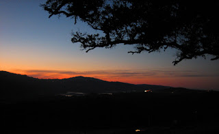 the first, that the highway that i chose to take between san francisco and palo alto is breathtakingly beautiful. at sunrise, the fog was still so thick that the mountains weren't even visible and only the largest trees near the road could be seen, paving a captivating path. mid-day, the lush, rolling hills and green trees could be seen for miles, and at time the lakes to the west are even visible. yesterday, i stopped at a vista point to take some photos, attempting to capturing a bit of the beauty. and this evening i found that sunset is equally gorgeous.